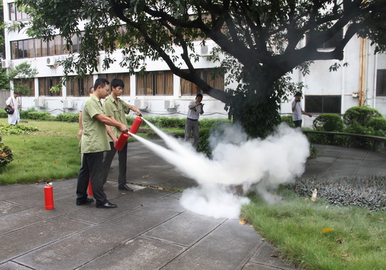 演练:职工宿舍爆发火灾,,,,,消防救护组职员迅速赶到现场举行灭火